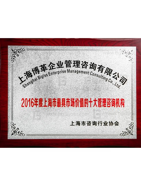 榮獲“上海市最具市場價值的十大管理咨詢機(jī)構(gòu)”