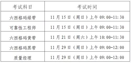考試成績計劃于2020年12月公布,屆時考生可登錄中國質量協(xié)會質量專業(yè)人員考試信息系統(tǒng)查詢、下載、打印成績單。如遇延期,將另行通知。六西格瑪綠帶、黑帶考試合格證書將按需發(fā)放。