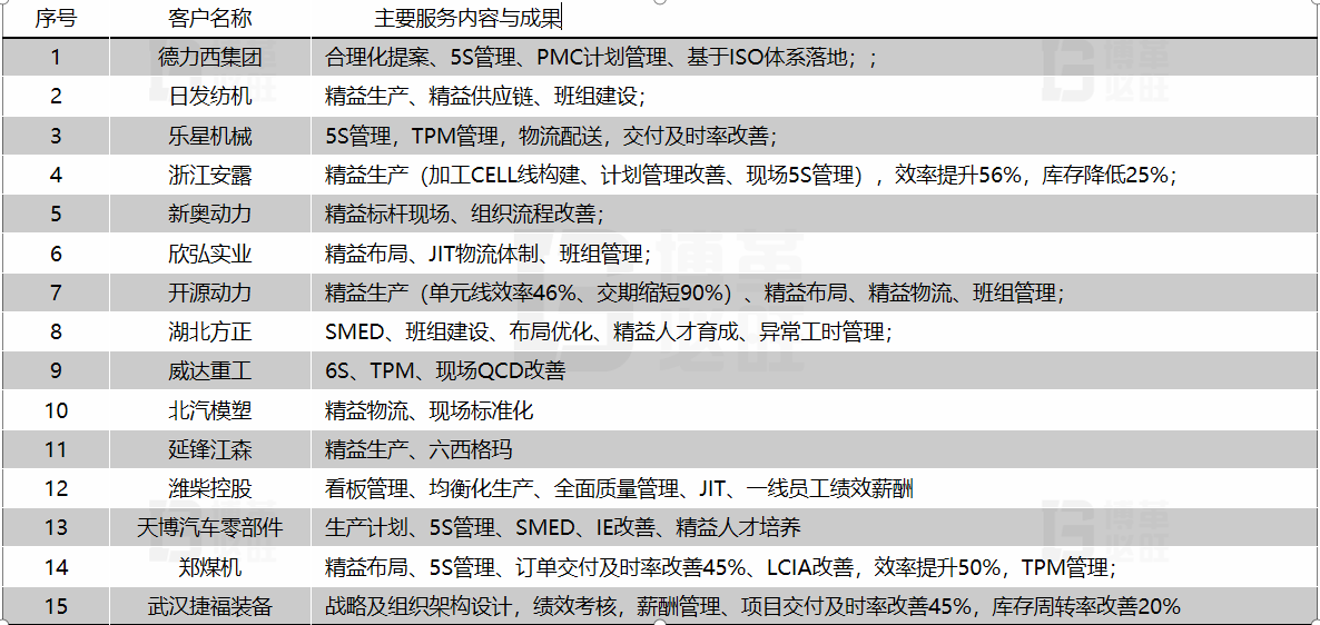 咨詢經(jīng)驗(yàn):具有8年全職從事精益管理咨詢和實(shí)踐與推進(jìn)工作經(jīng)驗(yàn),能夠精準(zhǔn)地識(shí)別客戶地需求和痛點(diǎn)并企劃推進(jìn)方向。擅長將精益理念和客戶實(shí)際情況結(jié)合,深度挖掘和分析解決問題,重在落地實(shí)踐輔導(dǎo)。