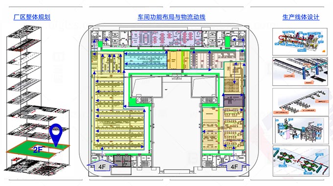 規(guī)劃和設(shè)計(jì)有效地利用設(shè)備、空間、能源和人力資源;簡(jiǎn)化生產(chǎn)加工過(guò)程并降低管理難度;提高工廠可視化效果,提升工廠整體形象的同時(shí),能夠按客戶(hù)需求節(jié)拍,強(qiáng)制平衡流動(dòng)的生產(chǎn)工藝布局。