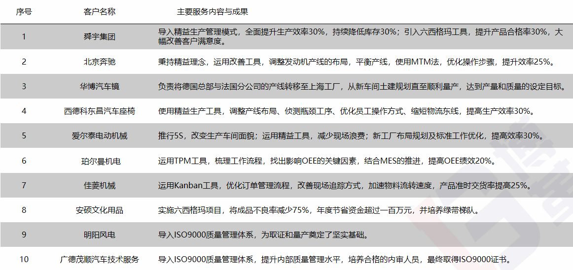 主要咨詢服務(wù)項(xiàng)目成就