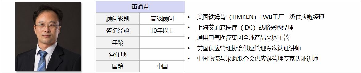 全球500強(qiáng)外企工作實(shí)戰(zhàn)經(jīng)驗(yàn),職業(yè)領(lǐng)域涉及的行業(yè)包括醫(yī)療設(shè)備、汽車零部件、工業(yè)電氣、機(jī)械制造、國際貿(mào)易等;對企業(yè)采購與供應(yīng)鏈管理各個(gè)環(huán)節(jié)都非常熟悉,為企業(yè)診斷問題并提出優(yōu)化方案,有效幫助企業(yè)實(shí)現(xiàn)降本增效;擁有10年的采購與供應(yīng)鏈培訓(xùn)經(jīng)驗(yàn),培訓(xùn)場次超過300場,參訓(xùn)學(xué)員超過10,000人。