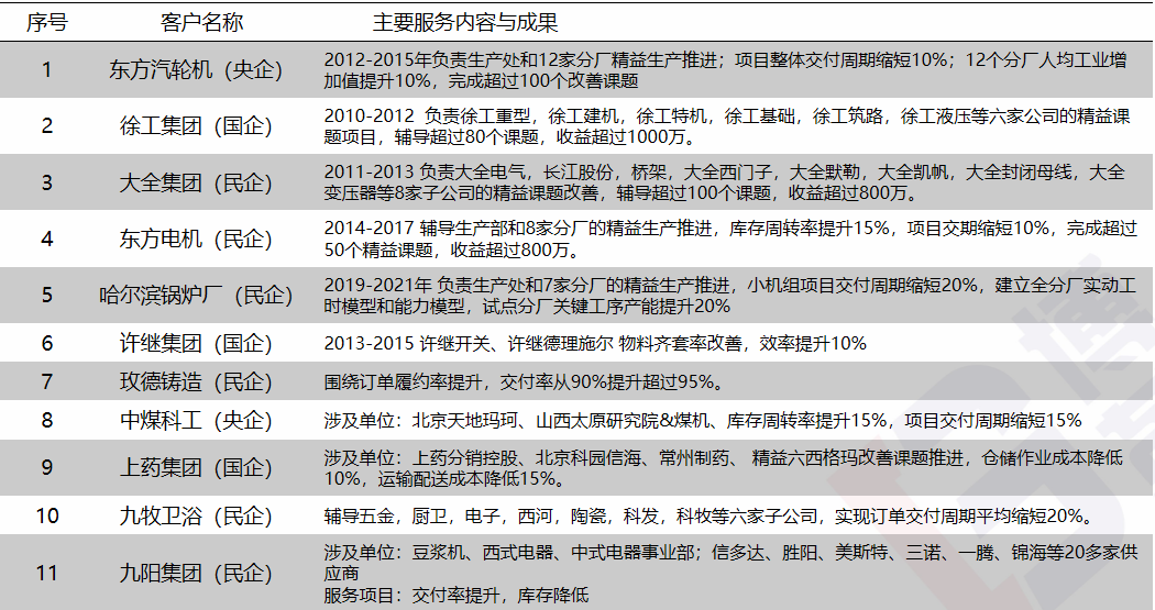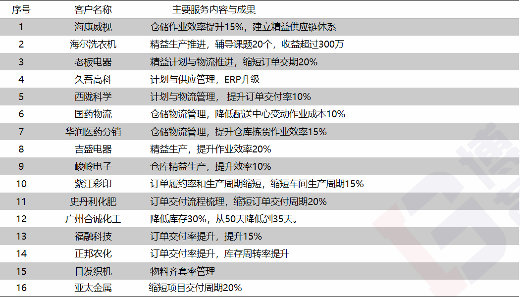 主要咨詢服務(wù)項目成就