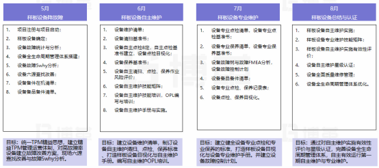 本次項(xiàng)目以東方集團(tuán)旗下全資子公司金航鈦業(yè)為主,以快速導(dǎo)入TPM活動(dòng),減少設(shè)備故障停機(jī),提產(chǎn)增效為第一要?jiǎng)?wù)。以打造TPM自主維護(hù)和專業(yè)維護(hù)團(tuán)隊(duì)為核心,完善設(shè)備管理系統(tǒng),構(gòu)建可持續(xù)發(fā)展的設(shè)備管理團(tuán)隊(duì)。