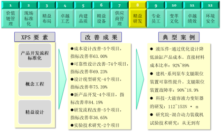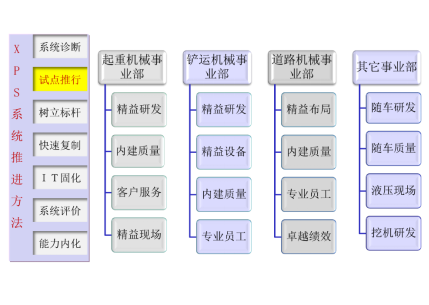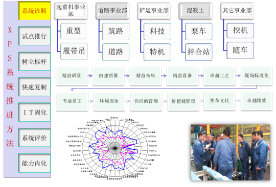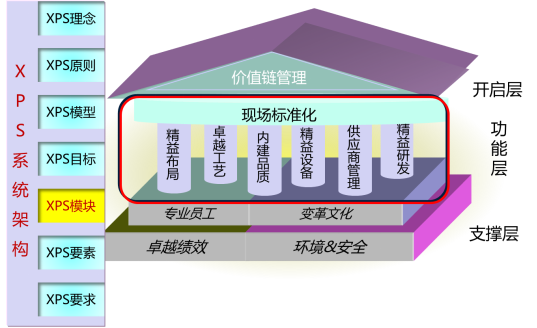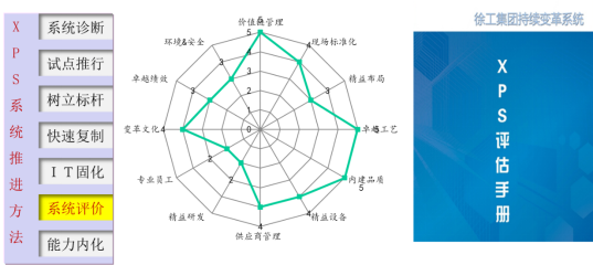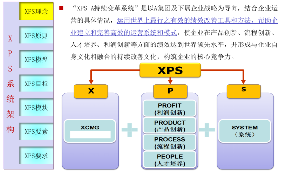“XPS持續(xù)變革系統(tǒng)”是以集團及下屬企業(yè)戰(zhàn)略為導向,結(jié)合企業(yè)運營的具體情況,運用世界上最行之有效的績效改善工具和方法,幫助企業(yè)建立和完善高效的運營系統(tǒng)和模式,使企業(yè)在產(chǎn)品創(chuàng)新、流程創(chuàng)新、人才培養(yǎng)、利潤創(chuàng)新等方面的績效達到世界領先水平,并形成與企業(yè)自身文化相融合的持續(xù)改善文化,構筑企業(yè)的核心競爭力。