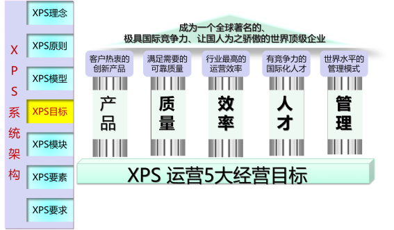 XPS的目標是幫助A成為世界頂級的企業(yè),世界頂級的企業(yè)必須能夠提供客戶認可的世界頂級的產(chǎn)品,滿足各種需要的世界頂級的質(zhì)量,行業(yè)最高的運營效率,具有競爭力的國際化人才,以及世界水平的管理運營模式
