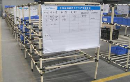 通過對配件車間內(nèi)油壓機,火排沖壓設(shè)備,火排裝配線,水箱沖壓設(shè)備,小U開料設(shè)備,總裝車間備料區(qū)等設(shè)施進行重新規(guī)劃、調(diào)整,減少車間一次物流距離1500M,在制品面積下降63%,庫存金額下降50%。通過燃熱產(chǎn)品部物與情報現(xiàn)狀圖與理想圖對比,得出目前存在的問題并設(shè)置改善對策。