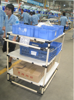 3) 物流工具和工裝的改善,減少了物流搬運次數(shù),減少物流量。