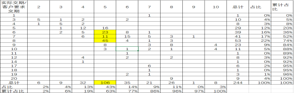 (4)對三年的數(shù)據(jù)進行分析,合同交期是最多的是5個月交期,實際執(zhí)行交期是6-8個月。