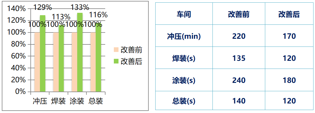 ? 焊裝產(chǎn)能提升后標(biāo)準(zhǔn)時(shí)間(TT)為120S,生產(chǎn)效率提升12.5%