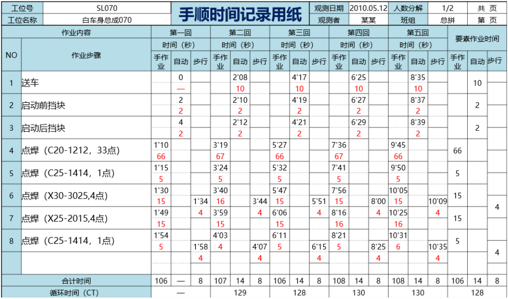 ?對(duì)各工序作業(yè)時(shí)間進(jìn)行現(xiàn)場(chǎng)測(cè)量統(tǒng)計(jì)