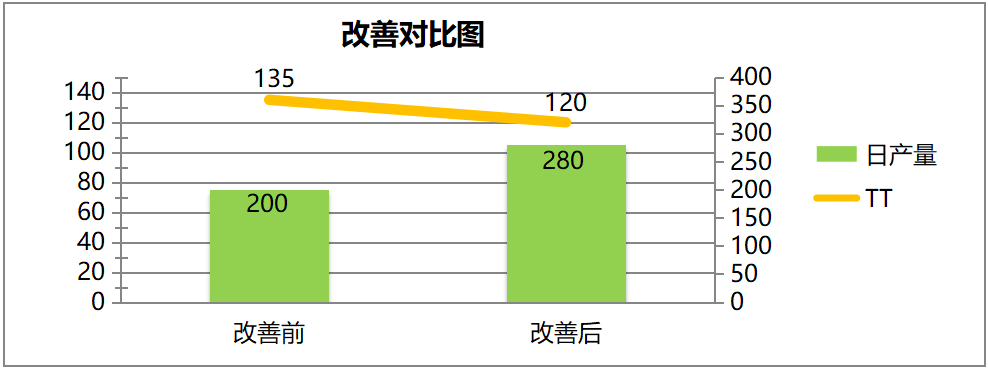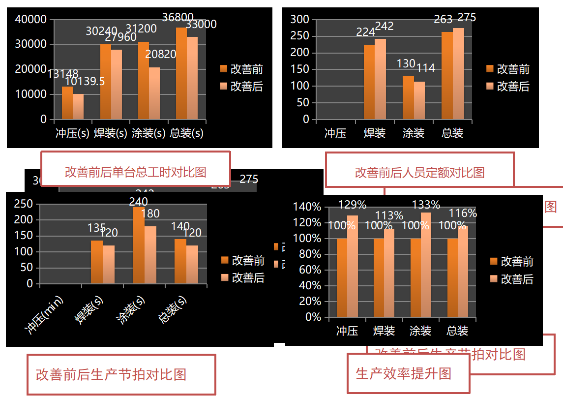? 總裝產(chǎn)能提升后標(biāo)準(zhǔn)時(shí)間(TT)為120S,生產(chǎn)效率提升16.6%