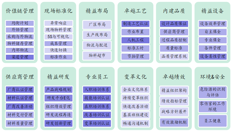 根據(jù)世界最佳實踐的做法,XPS將12大模塊分解為58項要素,每個要素構(gòu)成了模塊和系統(tǒng)運營的重要組成部分;博革將按照XPS的推進實施規(guī)劃,將這些要素按照最佳實踐的做法,結(jié)合A的具體情況,打造成A的核心競爭力。