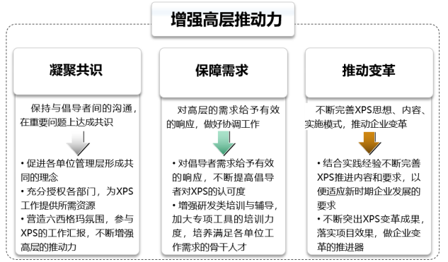 作為我們管理變革的重要武器!增加股東價值、滿足客戶變化、消除內(nèi)部損耗、加速流程運轉(zhuǎn)、質(zhì)量提升輸出、增強反應(yīng)能力;經(jīng)過5年多的實施,已經(jīng)形成了比較完善的方法論體系和管理支撐體系,形成了不斷滿足客戶需求、有力支撐公司戰(zhàn)略的持續(xù)變革系統(tǒng)—XPS;